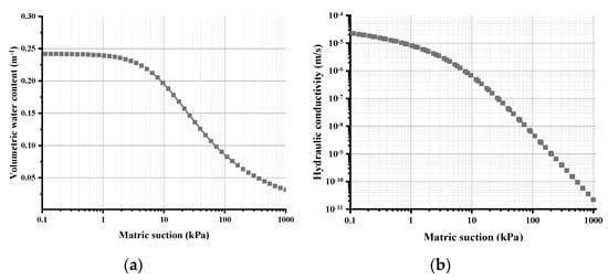 (a) Water retention curve; (b) hydraulic conductivity curve.