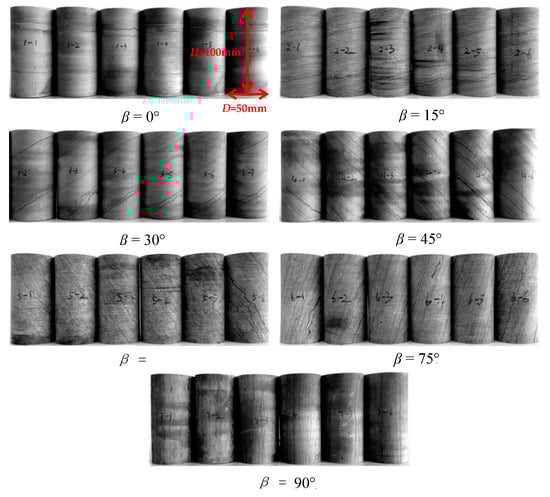 Rock specimens with different dip angles, β (modified after Huang et al. []).
