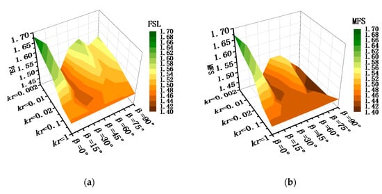 As can be seen from Table 4, the values of MFS and FSL for rock slope are similar under the conditions when only considering β to considering both kr and β. Therefore, we can consider only the effect of β but ignore kr to simplify the calculation.