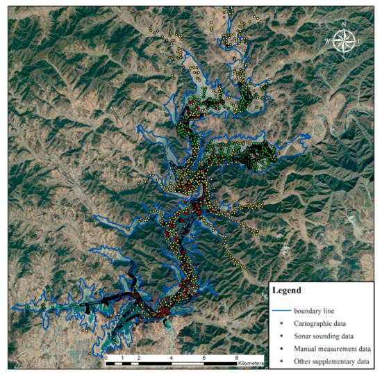 With the development of economies, the proportion of reservoirs as the main water source of urban water supply is increasing day-by-day [1]. Because pollutants brought into a reservoir by a river are blocked by the reservoir dam, they accumulate in the reservoir and form a potential safety hazard [2,3,4]. Studies on internal pollution sources in a reservoir, including sedimentation, as well as hydrodynamic and water quality simulation, require accurate reservoir topography. However, the underwater terrain of a reservoir keeps changing under the effects of erosion and siltation [5,6,7]. Therefore, to meet the needs of reservoir flood control dispatching and safe operation, timely updating of the topographic data is needed.