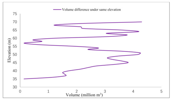 Relation curve of volume difference under same elevation.