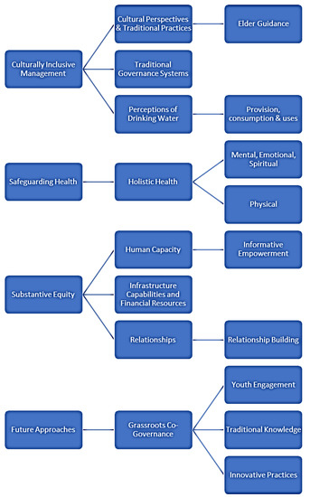 In an effort to understand challenges and facilitators to First Nations water governance, entire interview transcripts were re-coded according to the three principles of: provision of culturally inclusive management, safeguarding health, and substantive equity (Figure 1).
