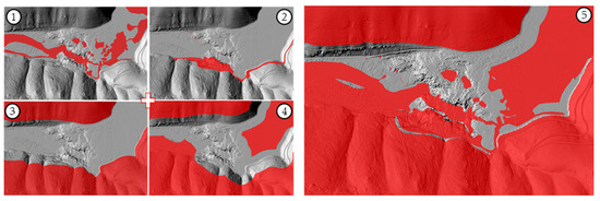 (1–4) Exclusionary criteria in GIS-based multicriteria decision analysis (GIS-MCDA); (5) final excluded area.