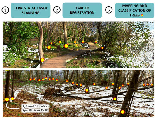 Simplified schematic representation of vegetation mapping from a registered dense point cloud (final scanning).