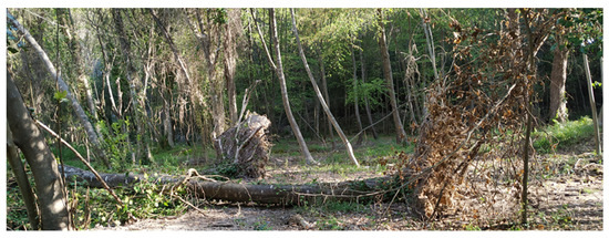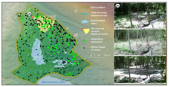 Various methods of invasive vegetation removal have been applied in many protected areas [50,51,52]. Prior to the development of a plan, it was necessary to obtain a permit from the Ministry of the Environment to experimentally remove the vegetation of the invasive A. altissima. This species aggressively reduces habitat biodiversity, reducing the value of natural ecosystems and causing immeasurable damage to karst ecosystems, nature parks and tourism [53]. Due to the sensitive and protected tufa ecosystem of NPK, it was decided that a manual and mechanical method would be applied in the removal of invasive vegetation. This type of manual and mechanical removal promotes the growth of shoots from the trunk and root shoots. Research has shown that A. altissima cannot withstand long-lived exposure to moist and flooded soils; however, once settled, it can survive on dry soils and tolerate drought conditions [54,55]. With continuous removal of invasive vegetation and reactivation of tufa-forming watercourses, unfavorable conditions for the regeneration and survival of this resistant plant were sought.