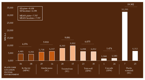 Each location was given a name and a specific code engraved on each base of the plate. The plates were placed in different fluvial environments. Table 2 gives detailed information about the locations. Measurement of TFD based on SfM photogrammetry was performed with a newly designed photogrammetric measurement system called the coordinate measuring macro-photogrammetry device (CMD). A detailed description of the CMD construction, components of the device, data collection, image workflow process and calculation of tufa growth and erosion rates are given in Reference [56]. However, TFD can be measured using others direct methods of measurement as modified micro-erosion meter (MEM), mass increment method, accretion pins and so forth.