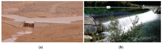 (a) Wadi-recharge dam, Jordan, reproduced with permission from de Laat and Nonner, Environmental Earth Sciences, published by Springer Nature (2011); and (b) Rubber dam, Russian River, USA, reproduced with permission from US Geological Survey (2008).