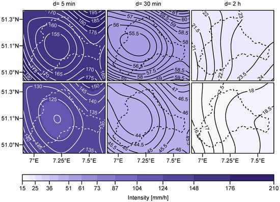 Extreme precipitation events are often associated with hazards such as flooding and the resulting damage. In Germany, many destructive floods have occurred in recent decades, i.e., the Elbe floods in 2002 and 2013. Weather conditions favoring the occurrence of heavy rainfall events are likely to increase with global warming [1] in Germany as well as in many places worldwide [2]. Therefore, it becomes even more important to adequately estimate occurrence probabilities of precipitation amounts and intensities, as this information is needed for the design of water management systems. These range from urban drainage systems to river and creek design and retention basins. Therefore different stakeholders need information on the occurrence of extreme precipitation for different durations. Consequently, it is necessary to understand the relationship between precipitation intensity, duration, and exceedance-probability.