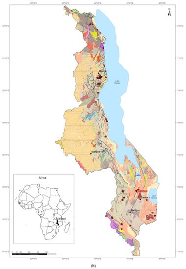 - Cannon, R.T. Geological Atlas of Malawi, 1st ed.; Government of Malawi: Lilongwe, Malawi, 1970.