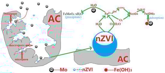 Proposed mechanism of removal of Mo(VI) from water by NZVI/AC.