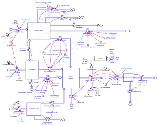 Water sector representation in the system dynamics model. Source: our own elaboration.