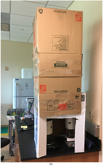 (A) Photo of lab experiment. (B) Illustration of lab experimentation.