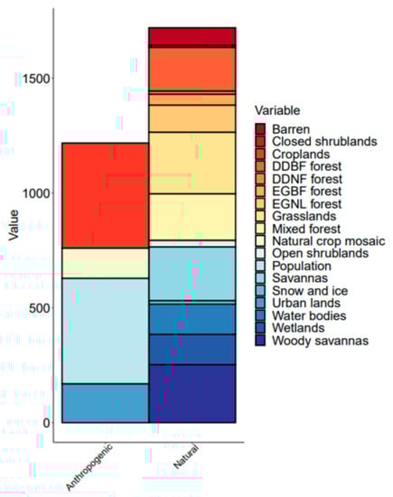 - Friedl, M.; Sulla-Menashe, D. MCD12Q1 MODIS/Terra + Aqua Land Cover Type Yearly L3 Global 500m SIN Grid V006. Distributed by NASA EOSDIS Land Processes DAAC. 2019. Available online: https://doi.org/10.5067/MODIS/MCD12Q1.006 (accessed on 20 January 2020).