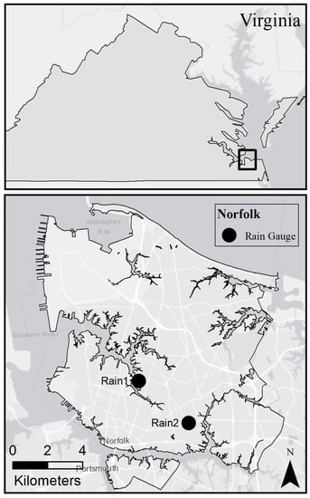 The US Environmental Protection Agency has developed software to simulate drainage and water transportation within urban environments called the Storm Water Management Model (SWMM) []. SWMM allows for the modeling of stormwater systems, taking into account runoff quality, hydrology, and elevation changes within a specific environment. It has been used when designing stormwater management systems and when development within a city changes such as building new communities or roads, as the number of impermeable surfaces affects stormwater absorption []. The SWMM tool allows for the modeling of a system, such as the City of Norfolk, Virginia, which commonly floods even in low-rate rainfall events when concurrent with high tides.