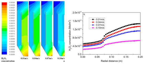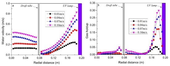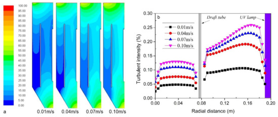11], which proves that the numerical calculation method is very feasible in simulating the hydrodynamic characteristics in the reactor. In this study, UV/H