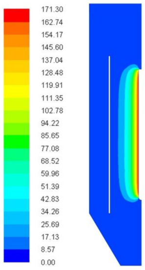 The geometry was created inDesignModeler software (ANSYS, Inc., Canonsburg, PA USA). Given the characteristics of the axially symmetric structure of the reactor, the flow field simulation can be simplified reasonably by a 2D axial symmetry model. An unstructured numerical grid was implemented with a total number of 14,462 elements, where the minimum size of the grid is 0.15 mm, and the maximum face size is 5.0 mm.