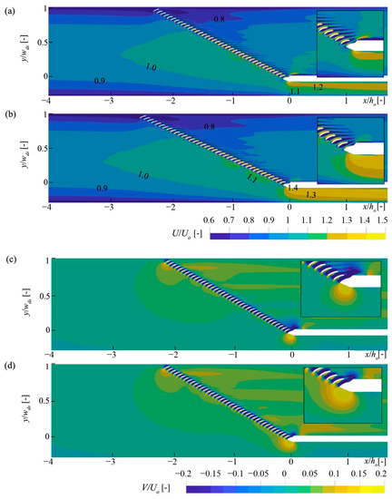 - Beck, C.; Albayrak, I.; Meister, J.; Boes, R.M. Hydraulic performance of fish guidance structures with curved bars—Part 2: Flow fields. J. Hydraul. Res. 2020, 58, 819–830. [Google Scholar] [CrossRef]