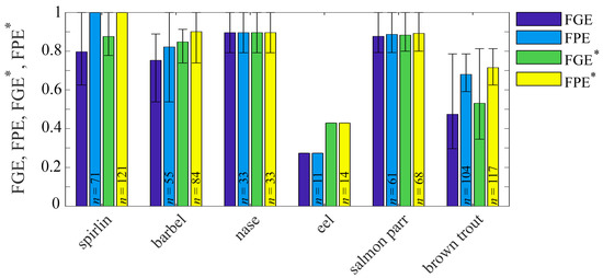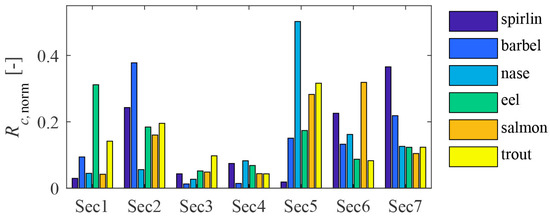 | FGS (α, β) | Uo (m/s) | Spirlin | Barbel | Trout | Eel | Nase | Salmon Parr |