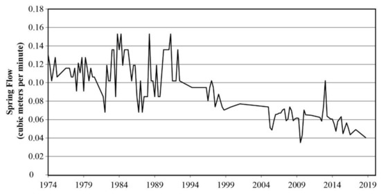 Discharge in cubic meters per minute at Quitobaquito from 1973 to 2017 [12].