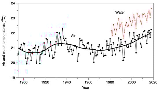 4.3. Trends in Average Summer Air and Water Temperatures 1895–2018