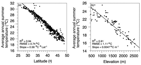 2.6. Effects of Latitude and Elevation on Water Temperatures