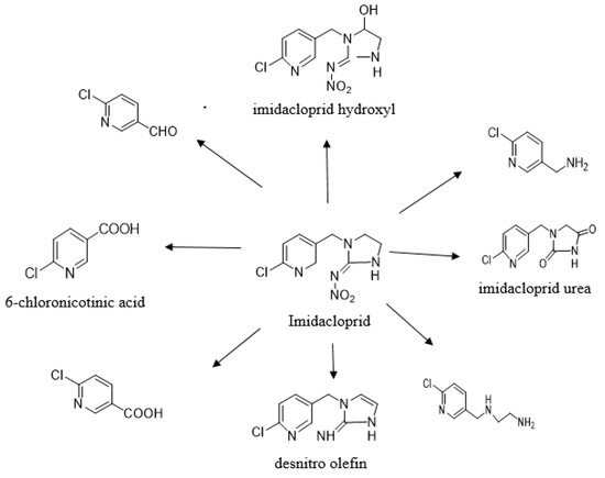 Due to the continuous presence of water in many soils, hydrolysis is also a major chemical reaction that influences the transformation of neonicotinoids in the soil environment. In contrast, photolysis is a chemical reaction, resulting in the degradation of neonicotinoids into secondary byproducts by reactions with sunlight. However, in the soil, photodegradation is the least common transformation due to the ability of soils to adsorb radiant energy thus reducing the exposure of sunlight on the compound [32,36].