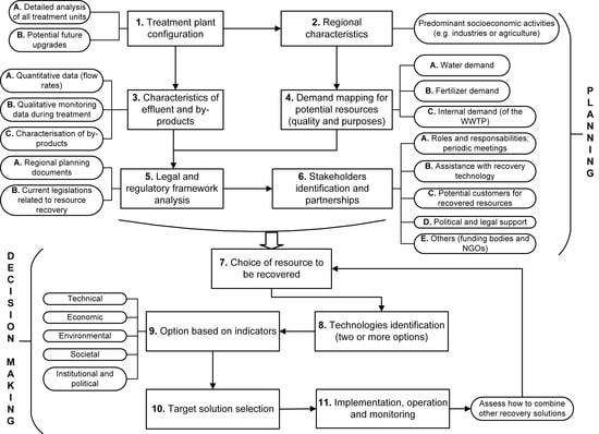 The scarcity of natural resources is a driver for initiatives of resource recovery and reuse, by producing biogas, fertilizer, and water that can be returned to the market. Recovering valuable compounds of municipal wastewater includes several important aspects for the planning process, decision-making, and implementation.
