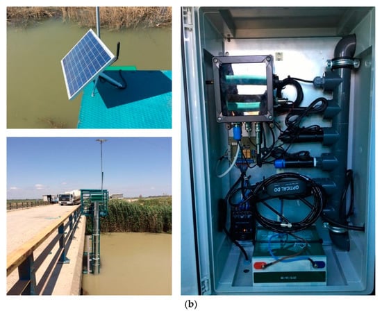 There are four main discharges of the drainage networks of the LSP (three to the Mediterranean Ocean, one to Akyatan Lagoon). We set up four real-time stream gauging stations (funded by the Turkish Scientific and Research Council (TUBITAK), Project No: 115Y063) at these locations to accurately measure the accumulated drainage flow from the entire study region. Each station included a Limnigraph and a multi-parameter device that measured Electrical Conductivity (EC), temperature, Total Dissolved Soils (TDS), Turbidity, Dissolved Oxygen, pH, and Nitrate on an hourly basis. A data logger on the station transferred the measured data to the server in our Remote Sensing and Geographic Information System laboratory at Cukurova University via data modem and General Packet Radio Service (GPRS). A separate concrete and steel construction platform was built for the Yemisli station (at Akyatan Lagoon) to cover all of the water inlets to the lagoon, while other stations were built on fixed structures such as bridges. The water level is measured by the radar system instead of a limnigraph at Bebeli station since the drainage channel in this area consists of mud after 2–3 m depth; this increased the station cost.