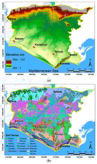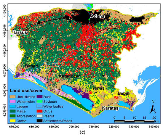 - Berberoglu, S.; Polat, S.; Ibrikci, H.; Donmez, C.; Satir, O.; Akin Tanriover, A.; Gultekin, U.; Kapur, B.; Erdogan, M.; Erdogan, N.; et al. Spatial Information Technology based Decision Support System for Seyhan Basin; Turkish Scientific and Research Council (TUBITAK) Project (ID:115Y063); Turkish Scientific and Research Council (TUBITAK): Adana, Turkey, 2019. [Google Scholar]