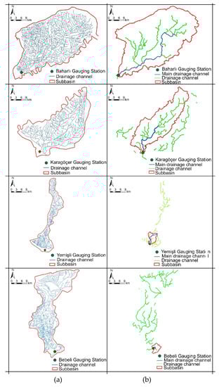 The coverage of the sub-basins delineated in the study ranged between 12,945 ha (Yemisli) and 61,439 ha (Baharli). The main channel of these sub-basins discharges directly into the Mediterranean Sea. They are fed by the return irrigation flow from agricultural lands. Gauging stations as the main outlets of each basin were installed on the bridges over the drainage networks.