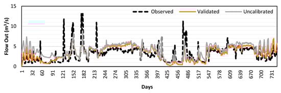Comparison of the observed, uncalibrated, and validated flow outputs.