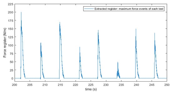 Extracted register made by grouping the maximum force events of each test (horizontal forces).
