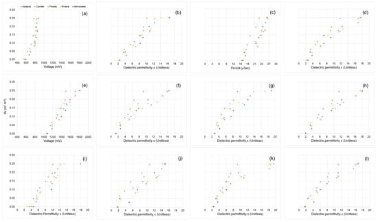 We generated calibration equations for several sandy soils representing the most common types used for citrus production in Florida (Figure 6; Figure 7). The sensor readings were taken over increasing θv values, successfully establishing soil-specific calibration equations for all the sensors, in all the soils sampled, and at the two depths tested. Sensors with output in voltage, period, and dielectric permittivity followed similar trends for all soil types and soil depths. The slopes on all soils differed for each sensor, evidencing that soil-specific calibration equations are required to improve sensor accuracy based on the soil used. That outcome is expected since several SMS have been evaluated, and most of the studies concluded that the sensor accuracy can be considerably increased by using soil- or site-specific equations determined in the laboratory and field instead of using the generic equations provided by the manufacturers [60,61,62].