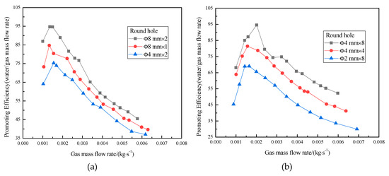 Changes of promoting efficiency with gas flow using 8 mm-wide circular holes.