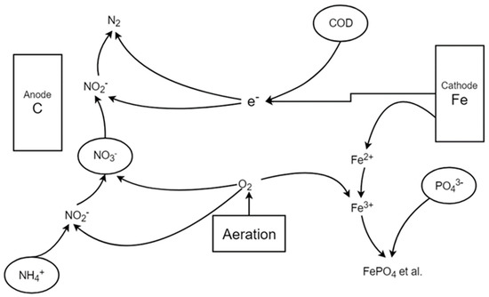 - Shen, Y.; Zhuang, L.; Zhang, J.; Fan, J.; Yang, T.; Sun, S. A study of ferric-carbon micro-electrolysis process to enhance nitrogen and phosphorus removal efficiency in subsurface flow constructed wetlands. Chem. Eng. J. 2019, 359, 706–712. [Google Scholar] [CrossRef]