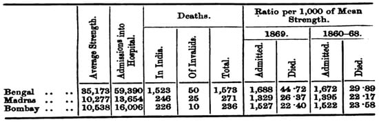 Steps should be taken for the establishment of hospitals at every native town in the neighbourhood of troops, venereal being a constant and prolific source of numerous admissions amongst them to hospital, as well as an ultimate cause of undermining many constitutions and rendering the men, in consequence, much more liable to the influences of malaria and prevailing epidemics.