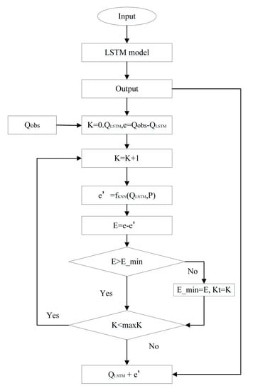 where denotes the simulation error at time , which is the difference between the LSTM results and the observed data. QLSTM,t-i is the result of the LSTM model at time , () is the vector that influences the discharge (such as precipitation) at time t-i, and is the dimension of the vector.