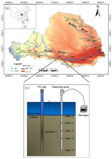 - Wang, L.; Jiang, W.; Song, J.; Dou, X.; Guo, H.; Xu, S.; Zhang, G.; Wen, M.; Long, Y.; Li, Q. Investigating spatial variability of vertical water fluxes through the streambed in distinctive stream morphologies using temperature and head data. Hydrogeol. J. 2017, 25, 1283–1299. [Google Scholar] [CrossRef]