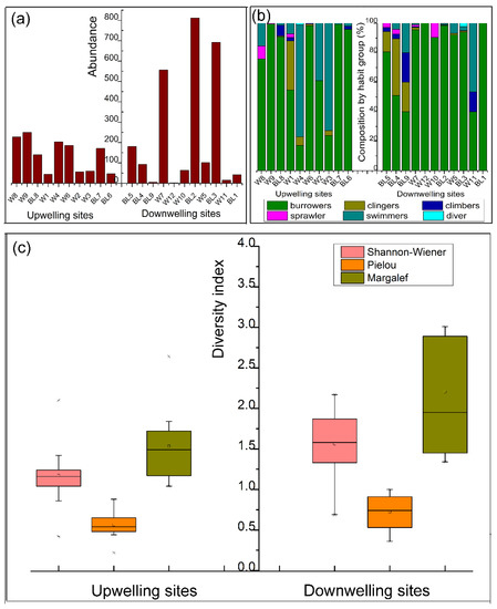 4.1. Effect of Upwelling Dynamics on Macroinvertebrate Communities