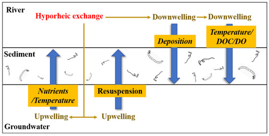 - Peralta-Maraver, I.; Reiss, J.; Robertson, A.L. Interplay of hydrology, community ecology and pollutant attenuation in the hyporheic zone. Sci. Total Environ. 2018, 610, 267–275. [Google Scholar] [CrossRef]