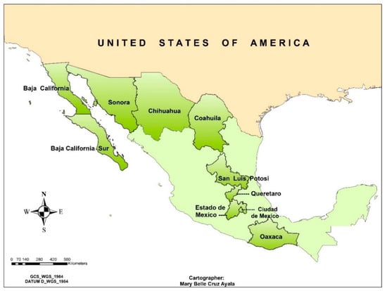 Climate change is projected to affect rainfall patterns in Mexico; in particular, the Northern and Northwest regions may be facing severe water scarcity all year round by the year 2040. Mexican researchers analyzed weather databases to project rainfall patterns and temperature for the next four decades [7]. The information obtained was merged with data of water availability for overexploited aquifers; the outcomes showed that in the Northwest, Northern, and Northeast regions, water availability would decline [7,8]. For the US–Mexico border region, the results obtained by US and Mexican scientists using several climate models, have shown “a continued high degree of annual precipitation variability” [9,10]. Regarding the temperature, average annual and seasonal temperatures, also nighttime temperature are projected to increase for the border US–Mexico region, the western Sonoran Desert, and the northern region of the Chihuahuan Desert [7]. The Working Group II Contribution to the IPCC Fifth Assessment Report pointed out that over North America, which includes Northwest Mexico, exhibit very likely increases in mean temperature [11].