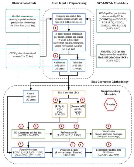 Flowchart of data processing and implementation of the bias correction (BC) methodology utilized. Hexagons represent the corresponding R-script included in Supplementary Materials.
