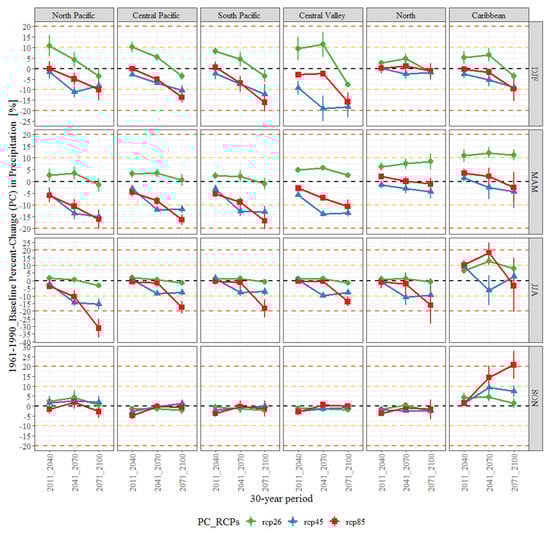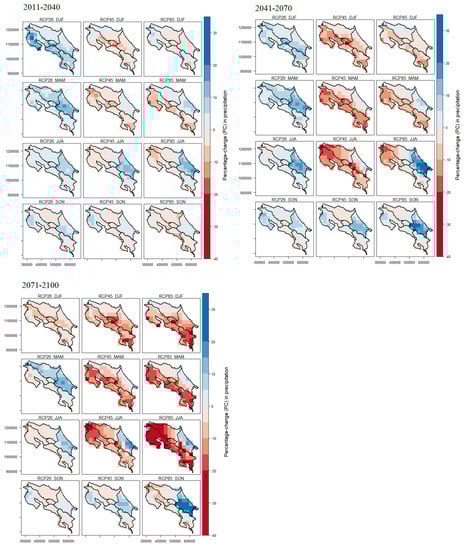 Relevant sectors such as hydropower generation, food production and cattle ranching are especially vulnerable to future climate extremes due to the strong dependence on the availability and distribution of water resources in Central America, especially for countries like Costa Rica and Panama [,]. Therefore, there is a need to produce reliable high-quality projections of future changes in precipitation due to climate change in the region.