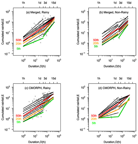 | 12-2 | This work | E = 0.18D1.07 | 48 ≤ D ≤ 602 | China, rainy season, CMORPH rainfall |