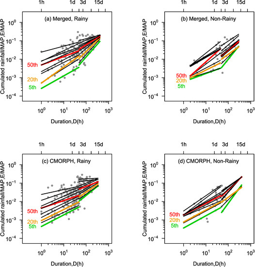 | 5-3 | this work | EMAP = 0.00089D0.41 | 1 ≤ D ≤ 47 | China, non-rainy season, CMORPH rainfall |
