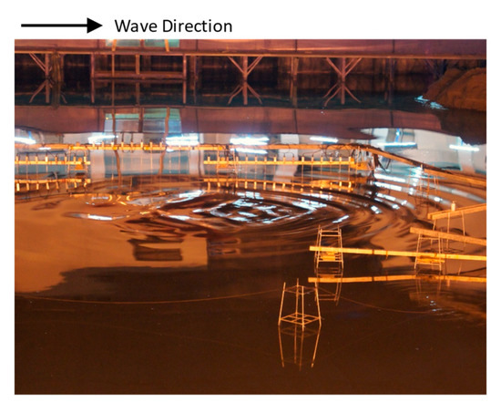 In this study, we investigated the properties of wave focusing of a horizontal crescent-shaped plate based on the framework of the crescent-shaped shoal proposed in [14] under regular wave conditions. When waves are focused to a specific location, owing to the reflection, refraction, diffraction, and shoaling, the wave heights, which represent the wave energy, increase; the wave energy density within a specific area is also enhanced. This area can be further considered for planning and designing wave farms and installing WECs to increase the overall efficiency of wave-energy harvesting. Among different types of WECs, an array of distributed point absorber WECs is considered to be potentially employable in the wave farm. Owing to this selection criteria, the directions of waves will not cause any application issues and higher wave heights would result in higher energy harvesting. The investigation was conducted both experimentally and numerically for separate directions of incident waves under different wave conditions. All experiments were performed in the wave basin at the Ocean Engineering Laboratory of the National Taiwan Ocean University, and the generated waves were controlled to be nonbreaking. A 3D numerical model implemented with the boundary element method (BEM) based on Airy wave theory was employed, and the calculated results were compared with the experimental ones. Planar wave-height distribution and cross-sectional wave-height elevation derived from both calculations and experiments were presented by the wave-height ratio , a dimensionless measure of wave height relative to the incident wave height. The wave-focusing characteristics induced by the submerged crescent-shaped plate for different incident wave directions, regular wave conditions, and submerged depths are discussed in the hope of providing insightful information for further possible applications of ocean-wave-energy harvesting.