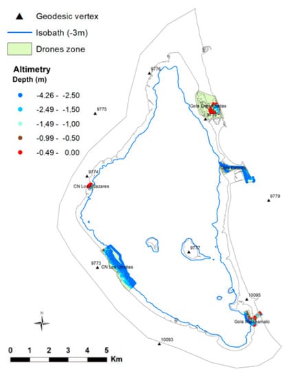 - Erena, M.; Atenza, J.F.; García-Galiano, S.; Domínguez, J.A.; Bernabé, J.M. Use of drones for the topo-bathymetric monitoring of the reservoirs of the Segura river basin. Water 2019, 11, 445. [Google Scholar] [CrossRef]