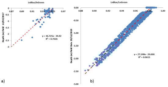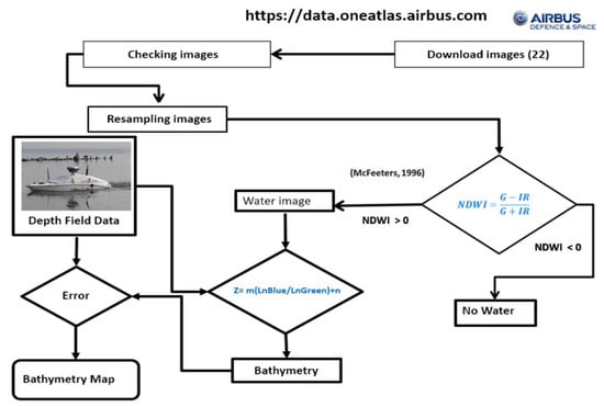 - Stumpf, R.P.; Holderied, K.; Sinclair, M. Determination of water depth with high-resolution satellite imagery over variable bottom types. Limnol. Oceanogr. 2003, 48, 547–556. [Google Scholar] [CrossRef]