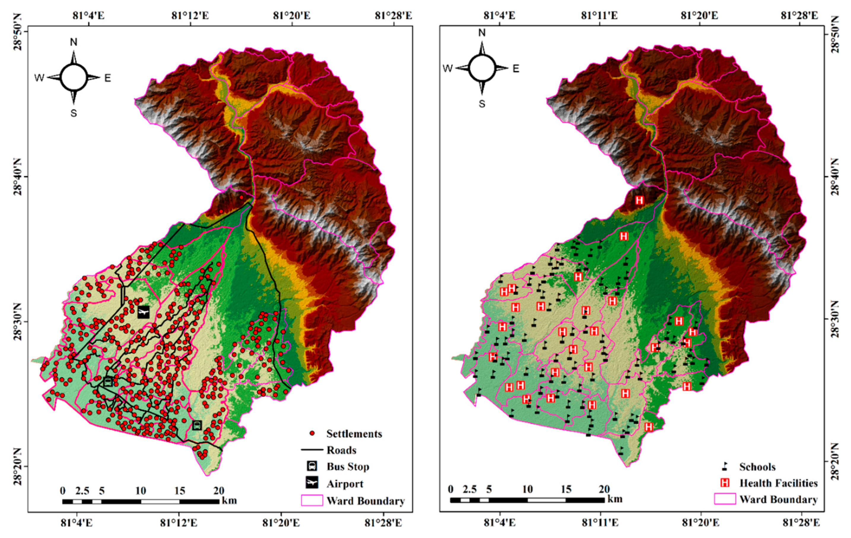 - Geofabrik Software Development Company, Germany. Open Street Map Contributors, Creative Commons. Mountain View, CA, USA. Available online: https://download.geofabrik.de/asia/nepal.html/ (accessed on 12 January 2019).