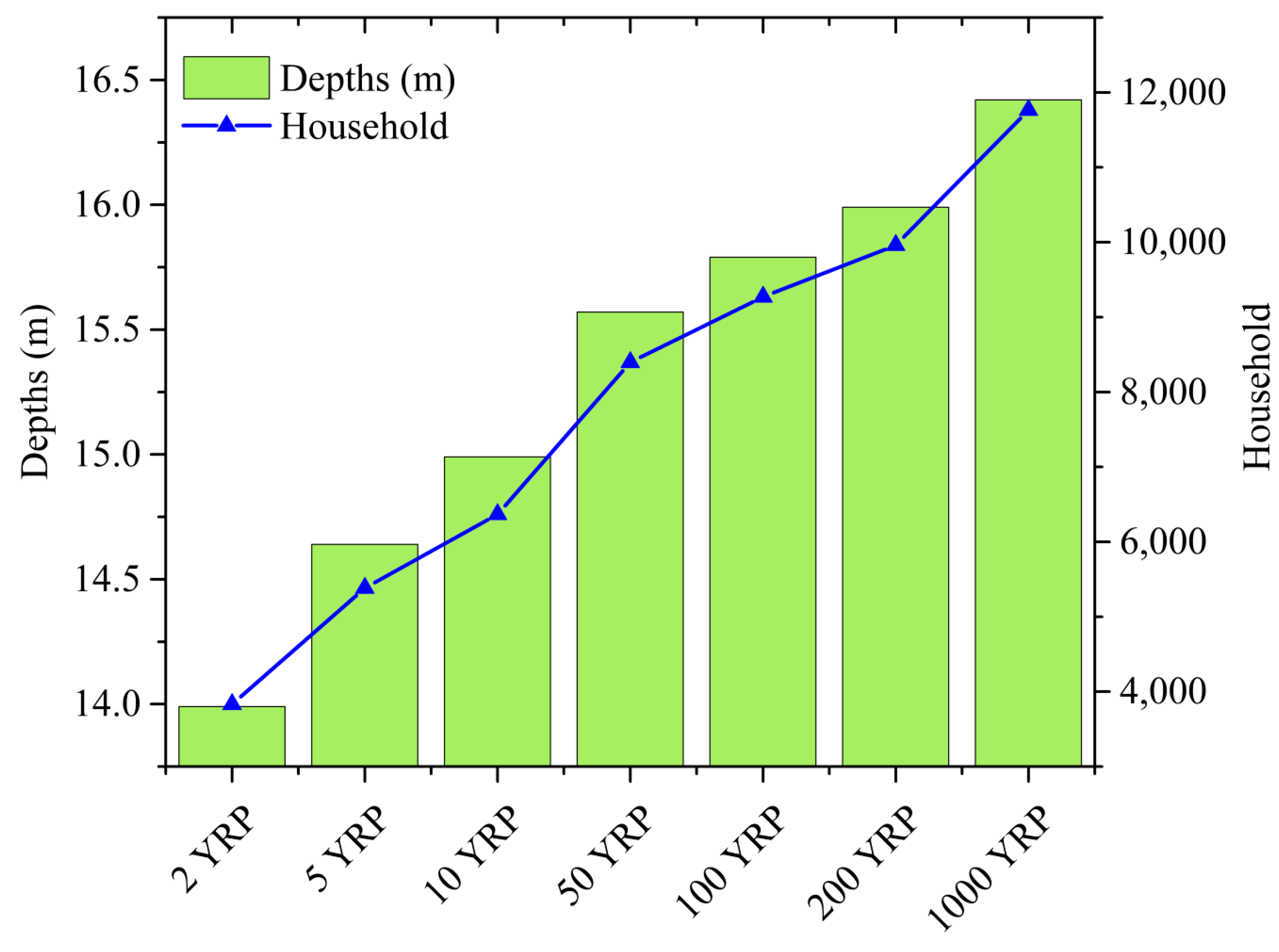 - Zhao, G.; Xu, Z.; Pang, B.; Tu, T.; Xu, L.; Du, L. An Enhanced Inundation Method for Urban Flood Hazard Mapping at the Large Catchment Scale. J. Hydrol. 2019, 571, 873–882. [Google Scholar] [CrossRef]